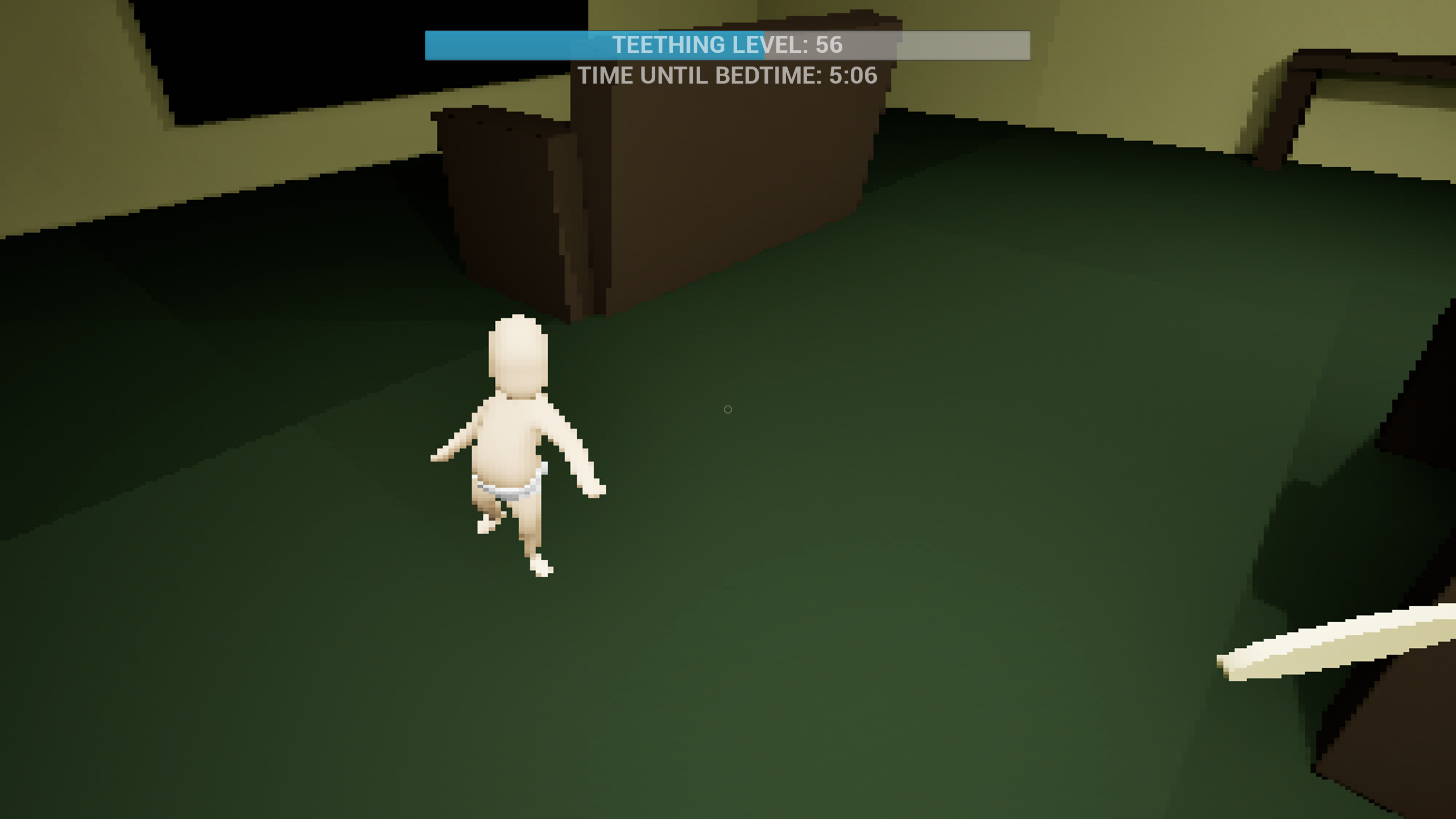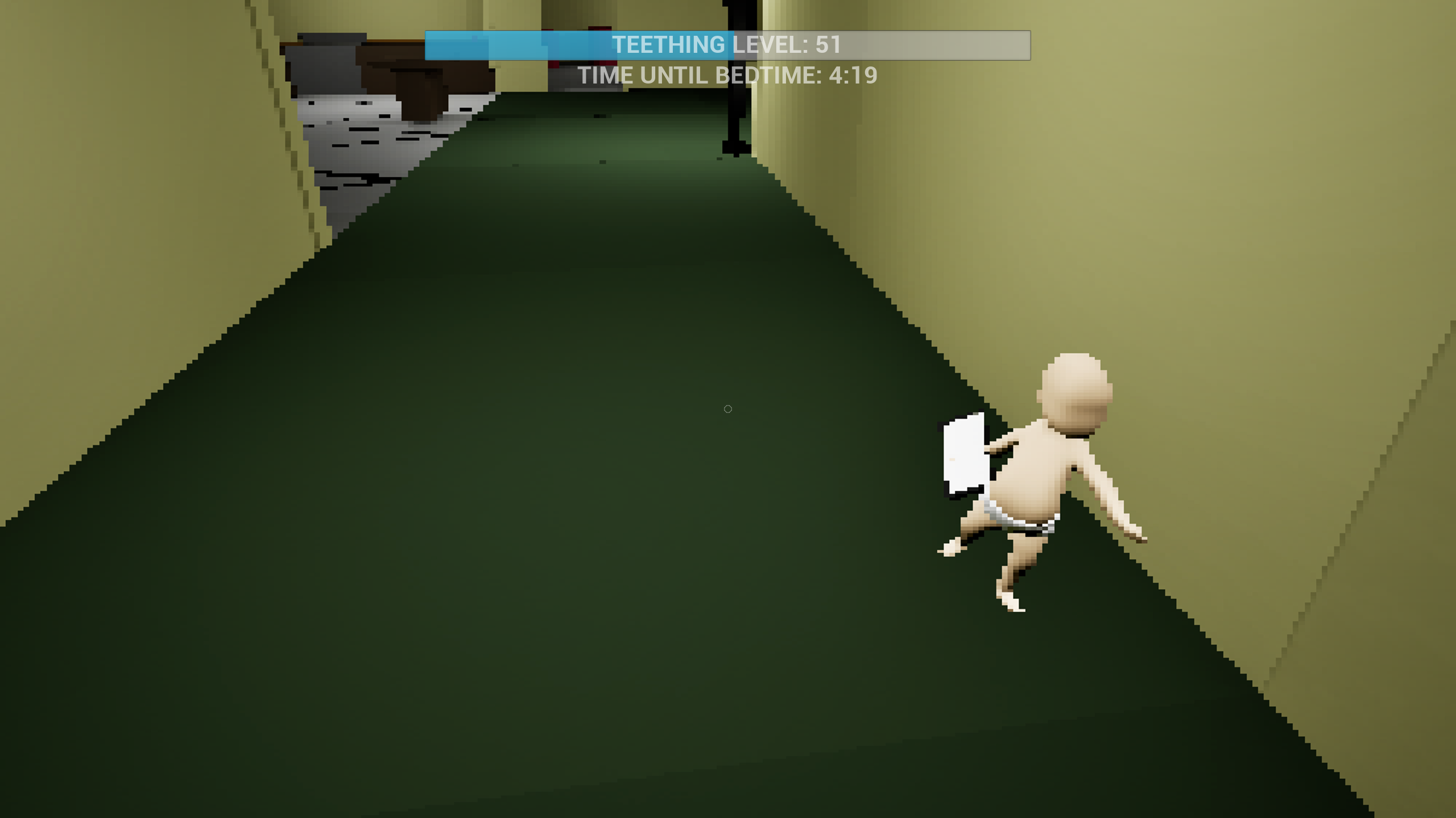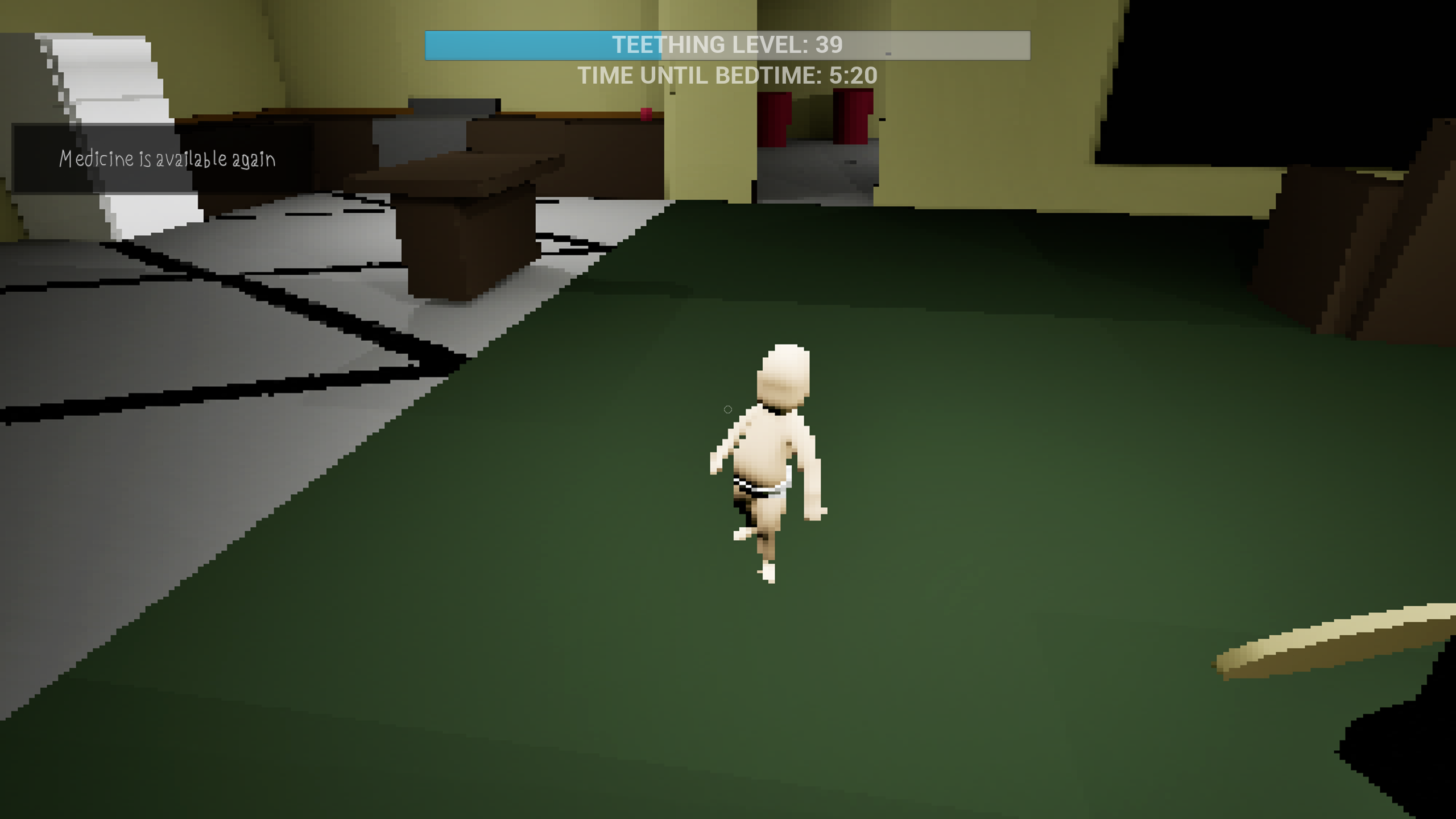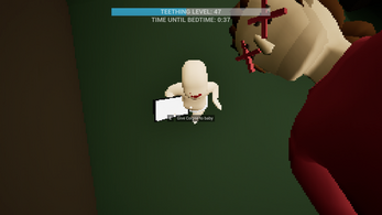 Once the teething level is 100, there's no stopping the rampage that a 1 year old will have, and he actually runs faster than the baby in game when he wants to bite us.